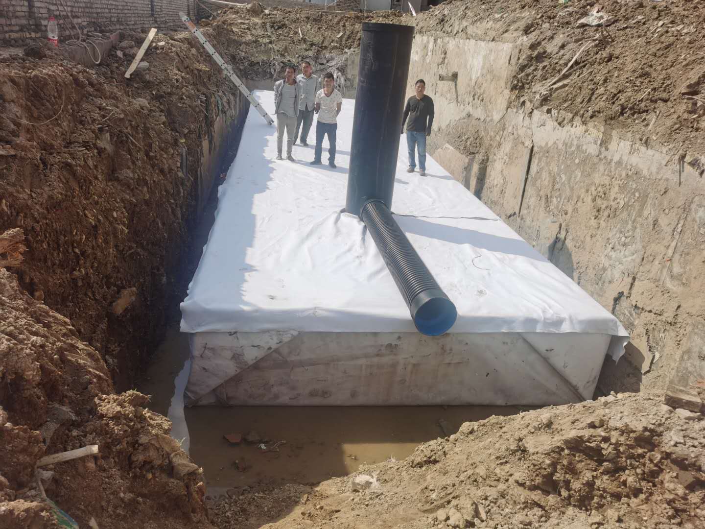 該項目雨水回收系統采用地埋PP模塊組合水池的方式收集雨水,前期經過截污掛籃、棄流過濾,后期通過地埋一體機過濾,消毒,最終使水質達到規范標準,用于廠區綠地的澆灑,景觀補水,道路沖洗。