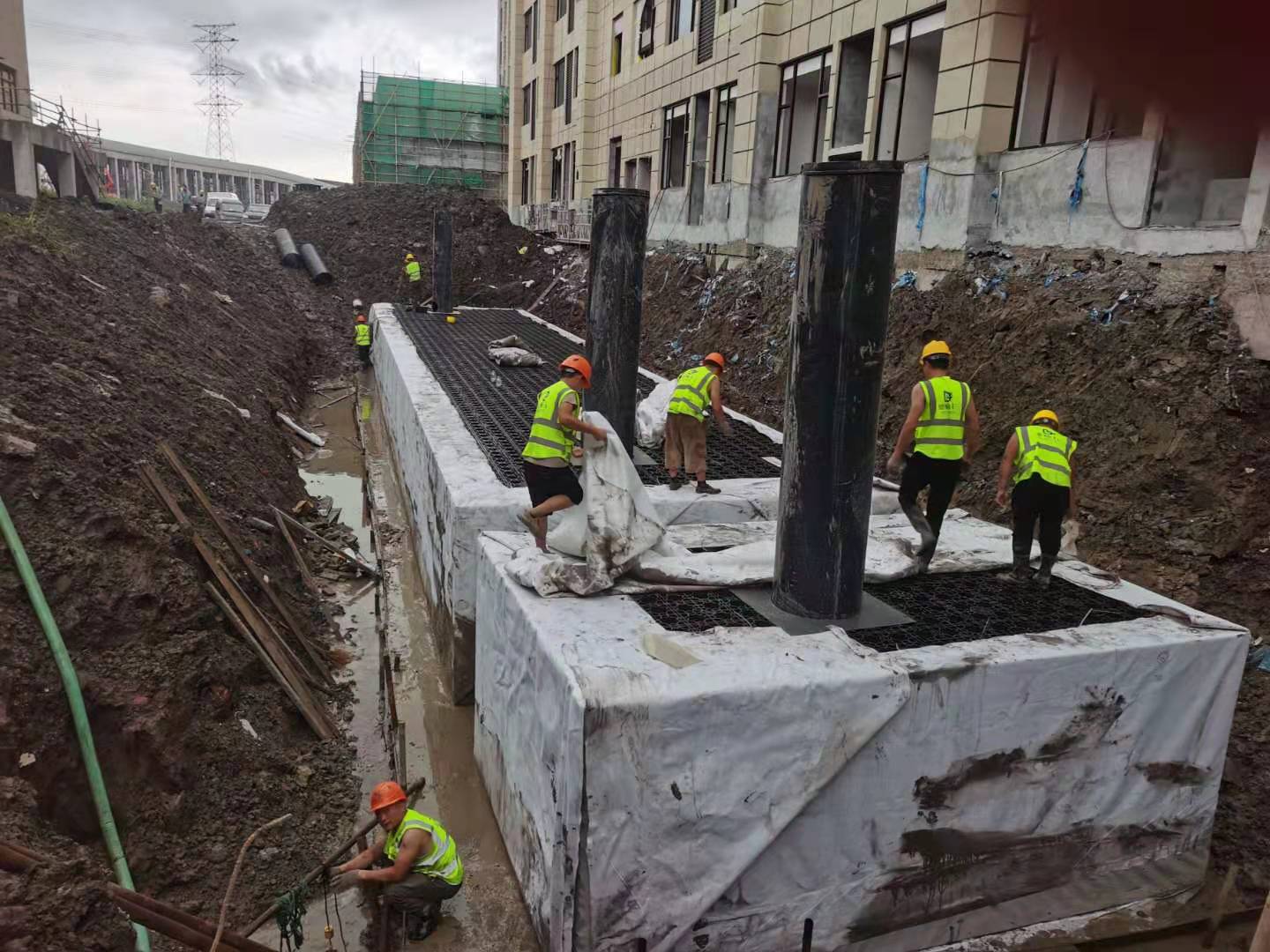 該項(xiàng)目雨水回收系統(tǒng)采用地埋PP模塊組合水池的方式收集雨水,前期經(jīng)過截污掛籃、棄流過濾,后期通過地埋一體機(jī)過濾,消毒,最終使水質(zhì)達(dá)到規(guī)范標(biāo)準(zhǔn),用于廠區(qū)綠地的澆灑,景觀補(bǔ)水,道路沖洗。